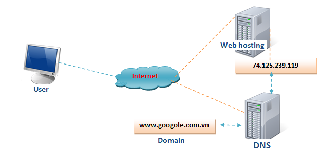 Với địa chỉ IP toàn số như trên thì người dùng sẽ khó nhớ vô cùng và dẫn đến sử dụng dịch vụ sẽ khó khăn. Để thuận tiện hơn thì một tên tượng trưng sẽ được sử dụng thay thế cho địa chỉ IP và tên đó gọi là tên miền (domain)