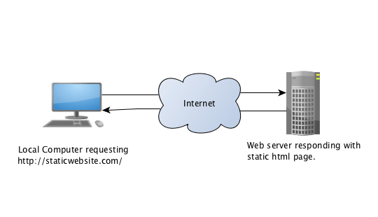 Thời kỳ đầu của web thì website được xây dựng đơn giản từ HTML với các tập tin tĩnh (static) và nội dung của website sẽ không có thay đổi gì vì nó không có cơ sở dữ liệu. Chúng ta có thể xem hình minh họa bên dưới